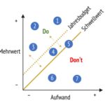 - Themenliste laufend führen und bewerten nach Mehrwert und Aufwand (Mini Business Cases)